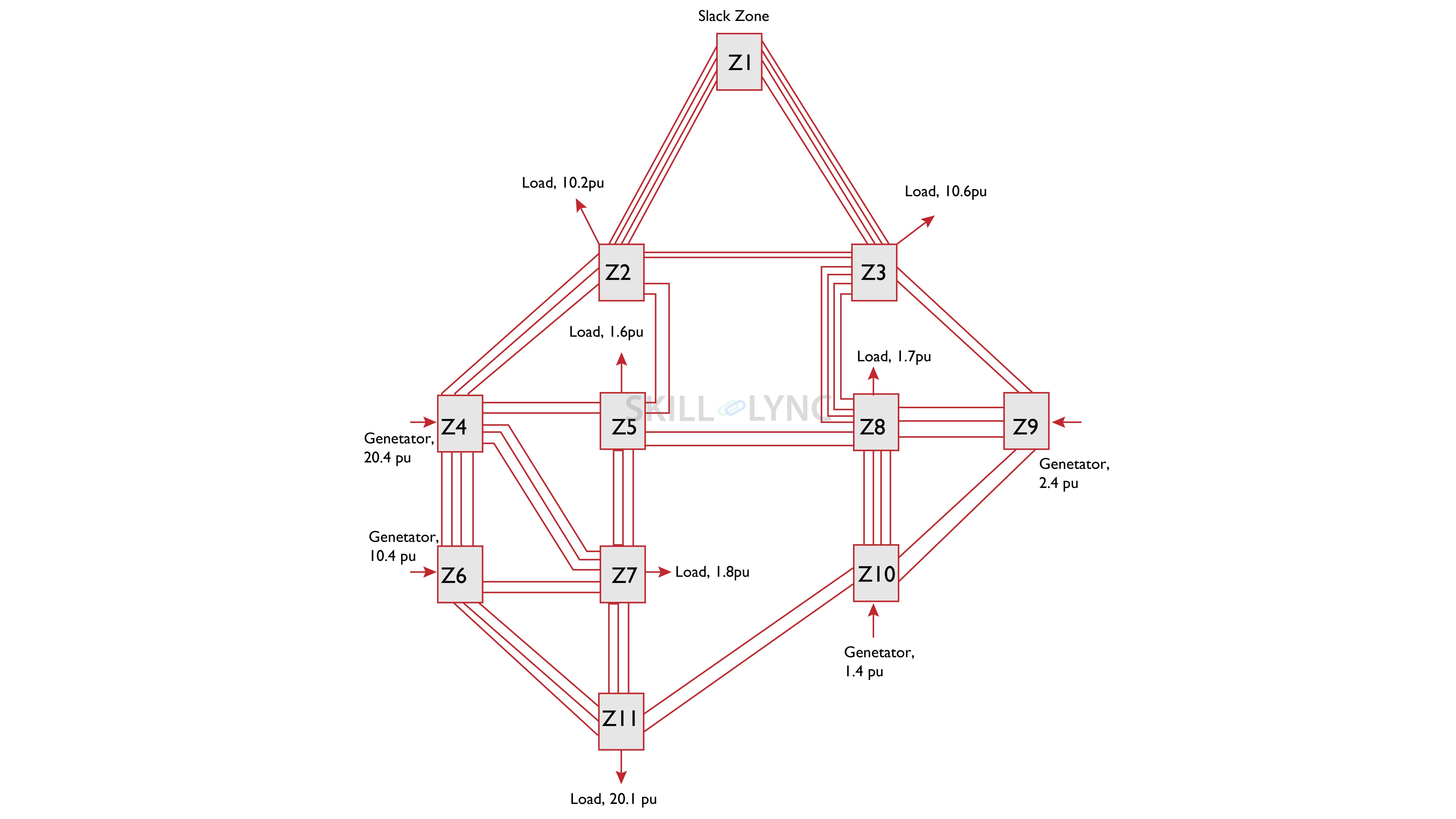 In this project, learners have to calculate the Available Transfer Capability using Power Transmission Distribution Factors (PTDF) and Line Outage Distribution Factors (LODF) methods for a power system model with 11 zones.