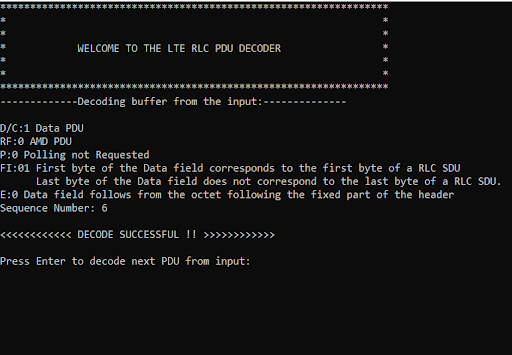 In this project, the students will develop an RLC PDU Decoder with two functions namely "Data Generator" and "RLC PDU Decoder" using the knowledge gained during the course. A PDU Decoder function will decode the PDU and display the content.