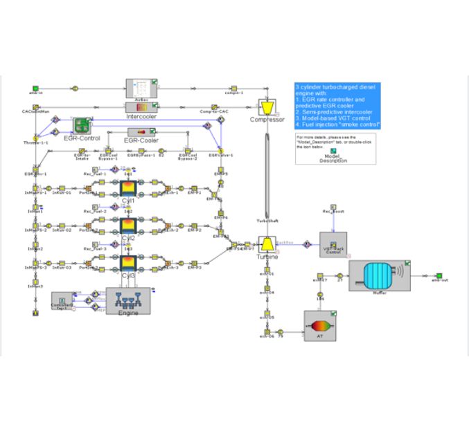 In this project, you will be setting up the case for a tractor engine by calibrating the computational models such as Heat transfer - WoschniGT , Combustion - DI Pulse , Emissions - NOx - Zeldovich / Extended Zeldovich models etc. You will also be learning other systems such as the injectors and turbochargers with and without an external high pressure EGR circuit to perform thermodynamic studies on important engine operating variables to draw out the trade-offs between Fuel consumption and Emission characteristics.