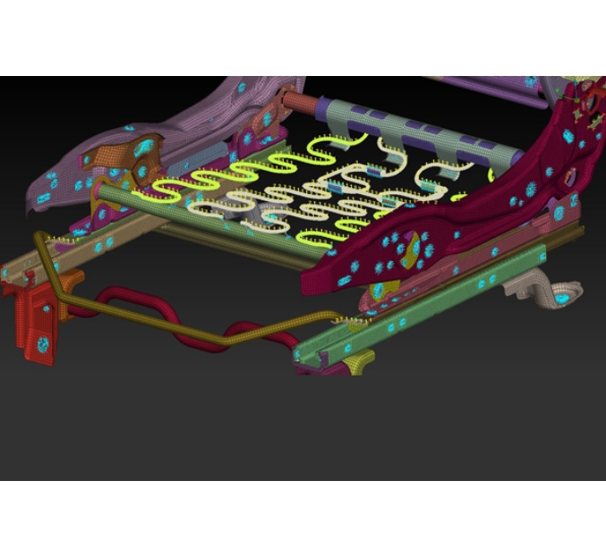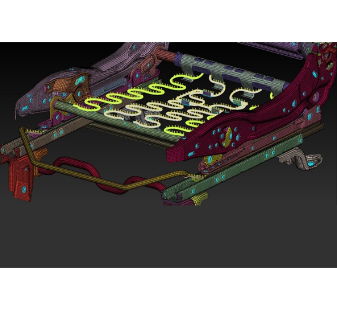 You will be provided with an CAD model of an Automotive seat structure. Modeling of the same assembly will be done by extracting mid surface by Manual and Automatic methods and meshing the whole component by achieving all the mentioned quality criteria parameters. Connections will be deployed in order to prepare model for NVH analysis.
