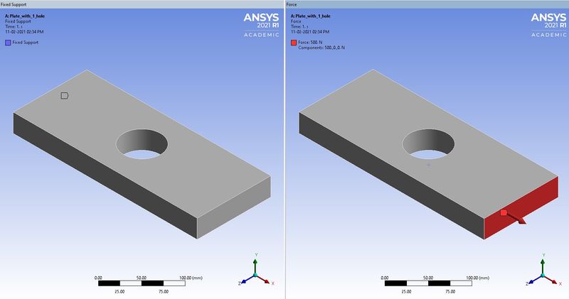 STRESS CONCENTRATION IN A PLATE WITH HOLE OBJECTIVE 1. To design a plate with hole for the following cases, Case(1): Length=300mm, height=120mm, thickness=30mm, circular hole at the center with diameter=60mm. Case(2): The dimensions are similar to case 1, but additional two smaller holes of diameter=30mm away from center.…