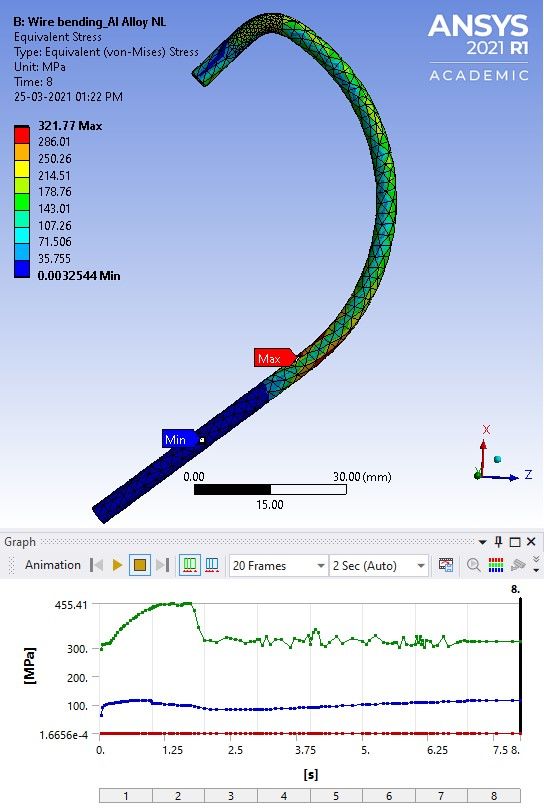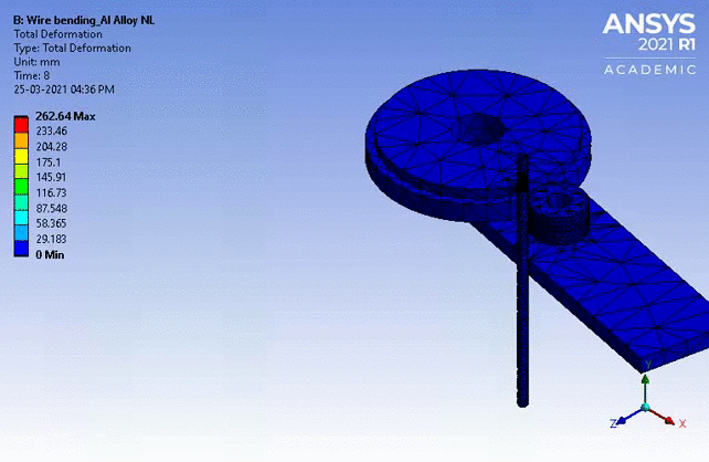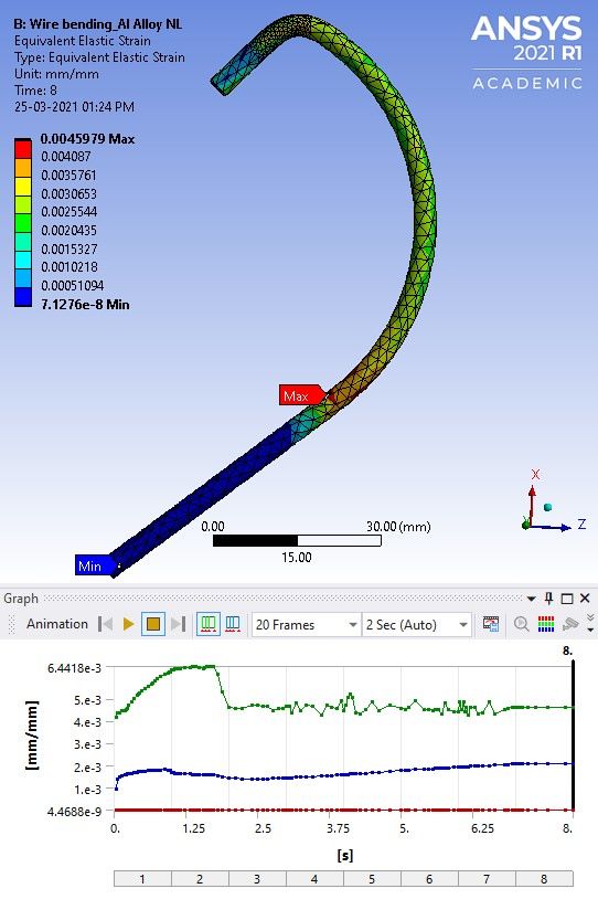 SIMULATION OF WIRE BENDING USING ANSYS WORKBENCH OBJECTIVE 1. To simulate bending of wire for different cases of wire material, Case-1: Copper Alloy NL Case-2: Aluminium Alloy NL Case-3: Magnesium Alloy NL 2. To find out Equivalent stress and Equivalent strain developed in wire for each case and compare the results. 1.…